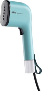 Il Braun QuickStyle 3 è uno stiratore verticale progettato per essere ultra-compatto e facile da trasportare. La potenza della macchina è di 1100 W, sufficiente per ottenere un’emissione di vapore continua fino a 20 g/min grazie alla tecnologia FastSteam; questo significa che il dispositivo è tarato per un’azione rapida sul tessuto senza dover attendere tempi lunghi di pre-riscaldamento. Il serbatoio dell’acqua è removibile e trasparente, con capacità di 70 ml: una soluzione pensata per il riempimento rapido e per il controllo visivo del livello d’acqua, ma che impone anche considerazioni sull’autonomia durante sessioni estese. Il riscaldamento è dichiarato molto veloce, in genere tra i 30 e i 60 secondi, una caratteristica alla quale si affida parte dell’usabilità quotidiana: accendi, aspetti poco e procedi.